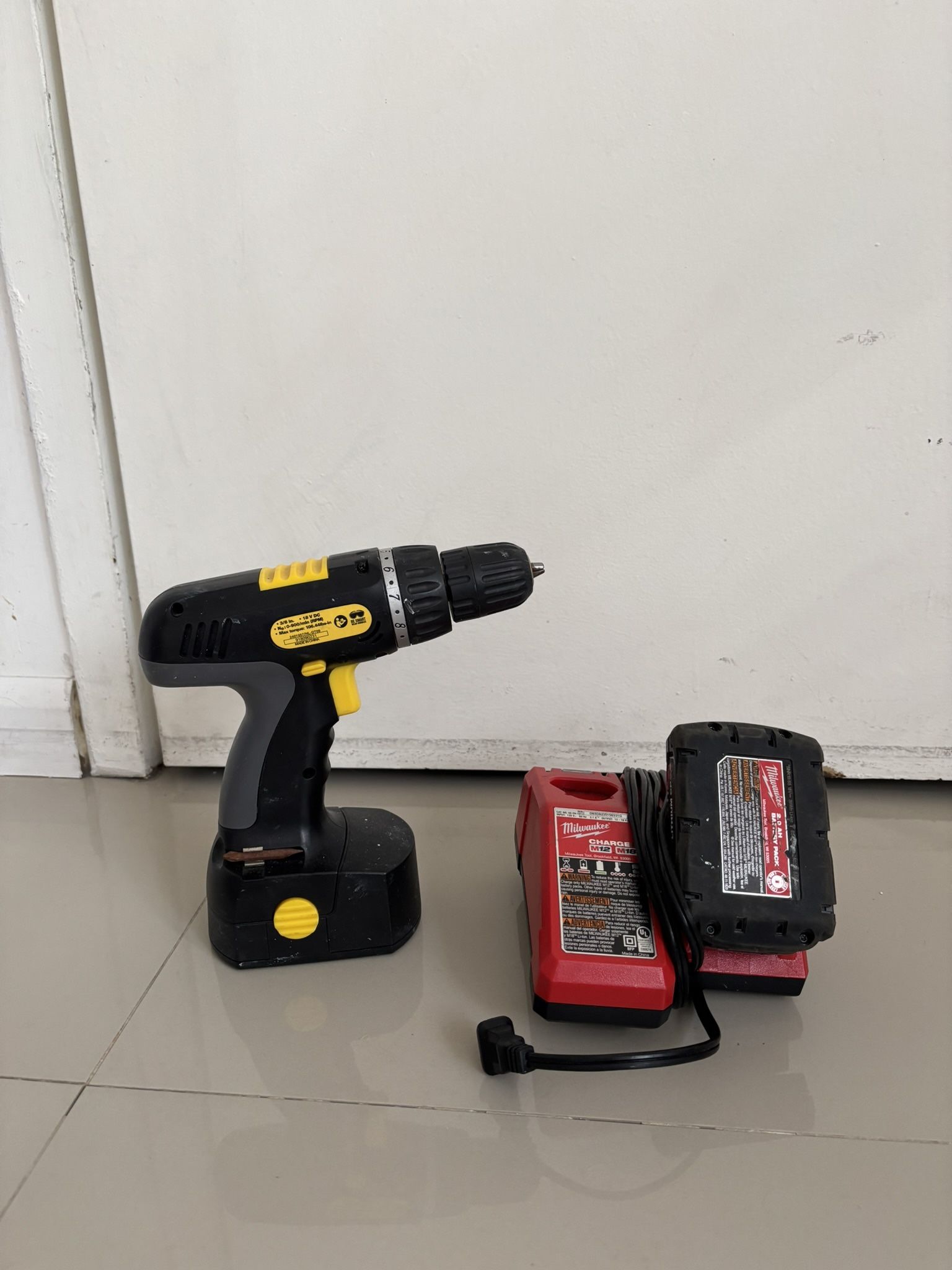 Milwaukee M12 and M18 Multi-Voltage Battery Charger & cordless drill Milwaukee Tool 48-59-1850 Power Tool Rechargeable Batterie - Chemistry: Lithium-Ion Pre-owned. Works perfectly!