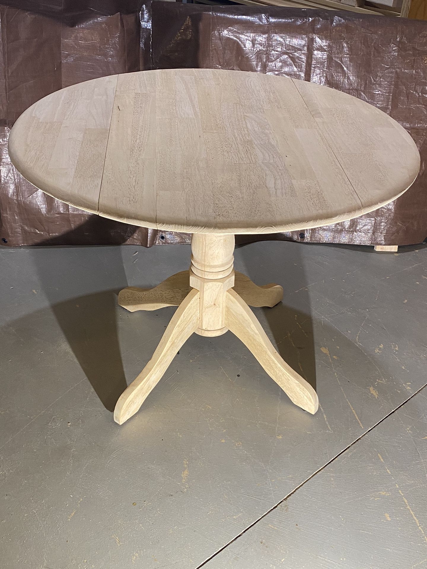As it is,you finish……$300I paint your color choice……$400.I stain your choice and clear coat……$500 NOT SURE HOW OLD 40” radius top at 30” high Updated hardware as well.ABOUT to paint unless someone wants as is or stain?