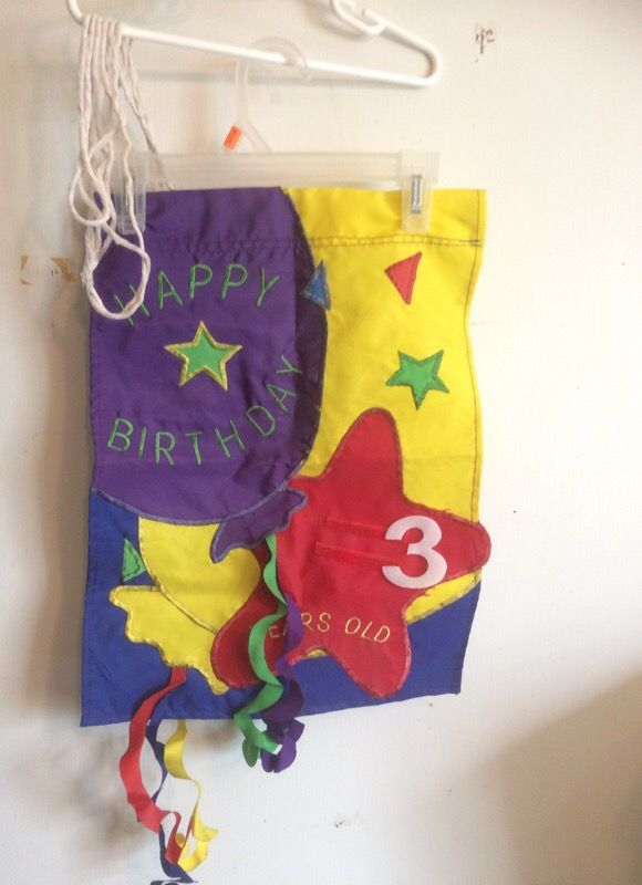 Small 12" happy birthday flag velcro strips you can change the birthday number to be reused over and over & a large 27"x39" happy birthday banner with four candles