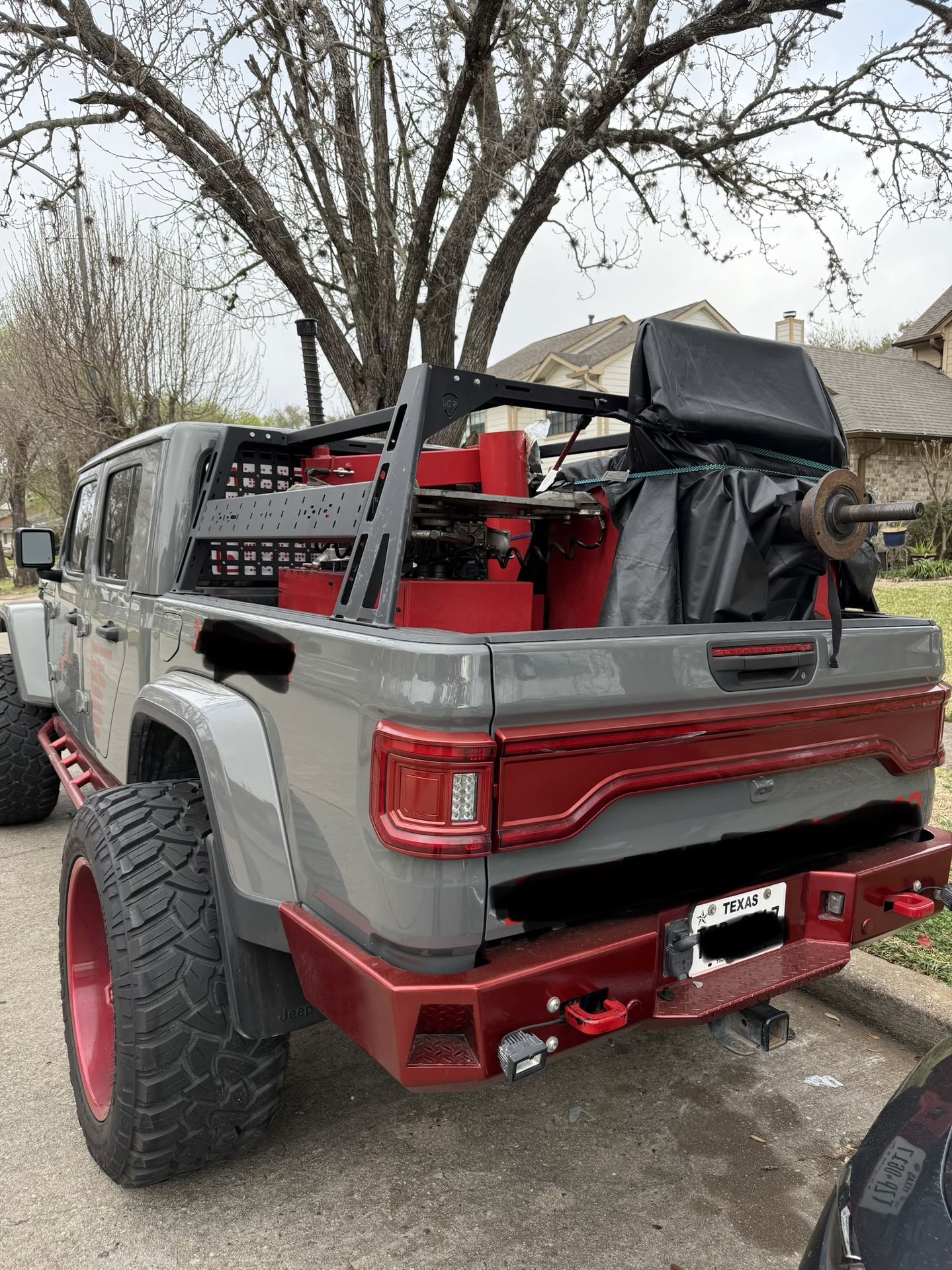Fits 2020+ Jeep Gladiator. Full-height design with side MOLLE panels for mounting gear. Powder-coated black, good condition. 500+ lb capacity, bolt-on install. Ideal for roof top tent, recovery boards, fuel cans, overlanding, etc. Retails new for $1,299+. Asking $600—you remove it (super easy, just 2 bolts per corner). Or pay $750 and I'll remove it and install on your Gladiator. Located in Sugar Land, TX 77478. Local pickup only. First come, first served—every Gladiator owner wants this one because it's perfectly matched to the truck's length, height, and width. I'm keeping it but it's in the way for my mobile business.