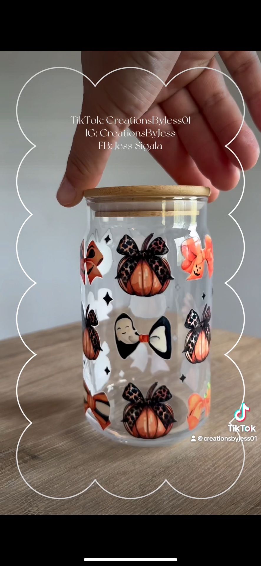 Hand crafted 16oz Glass Can Cups •Fall • Floral • Virgin Mary • Full Order comes with: Glass Can Bamboo suction Lid Glass or Acrylic/Plastic Straw Straw Cleaner Brush Prices range $7-$10 Dm for more Can Ship and Local