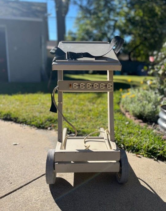 Good condition was in our garage when we moved in, provides convenient mobility of test equipment to make them readily available when needed and effectively extend the amount of lab bench space. Has 6 outlets in working https://offerup.co/faYXKzQFnY?$deeplink_path=/redirect/ is a multi-tiered, rolling cart designed to hold equipment.with strap. The cart features an integrated power strip with 6 outlets. It has large rear wheels and smaller front casters for mobility. The top platform is adjustable and includes a strap for securing equipment.Asking $250.