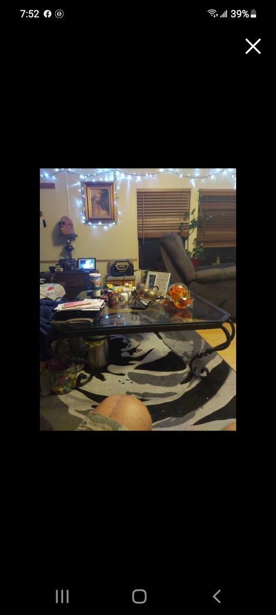 Lrg Rot Iron Glass Coffee Table 42inby42in