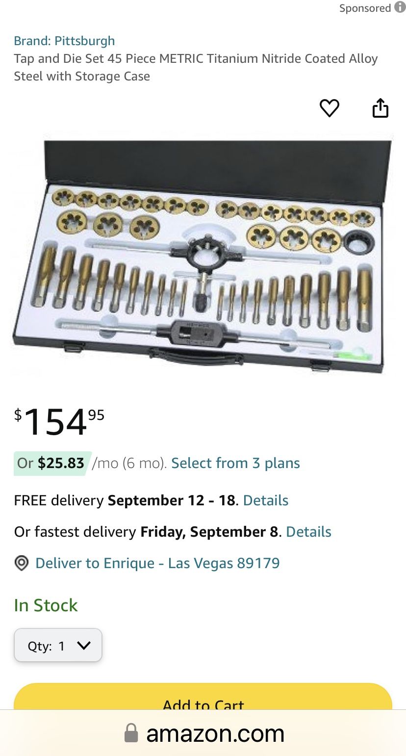 Open box never been used . Brand: Pittsburgh Tap and Die Set 45 Piece METRIC Titanium Nitride Coated Alloy Steel with Storage Case. OBO