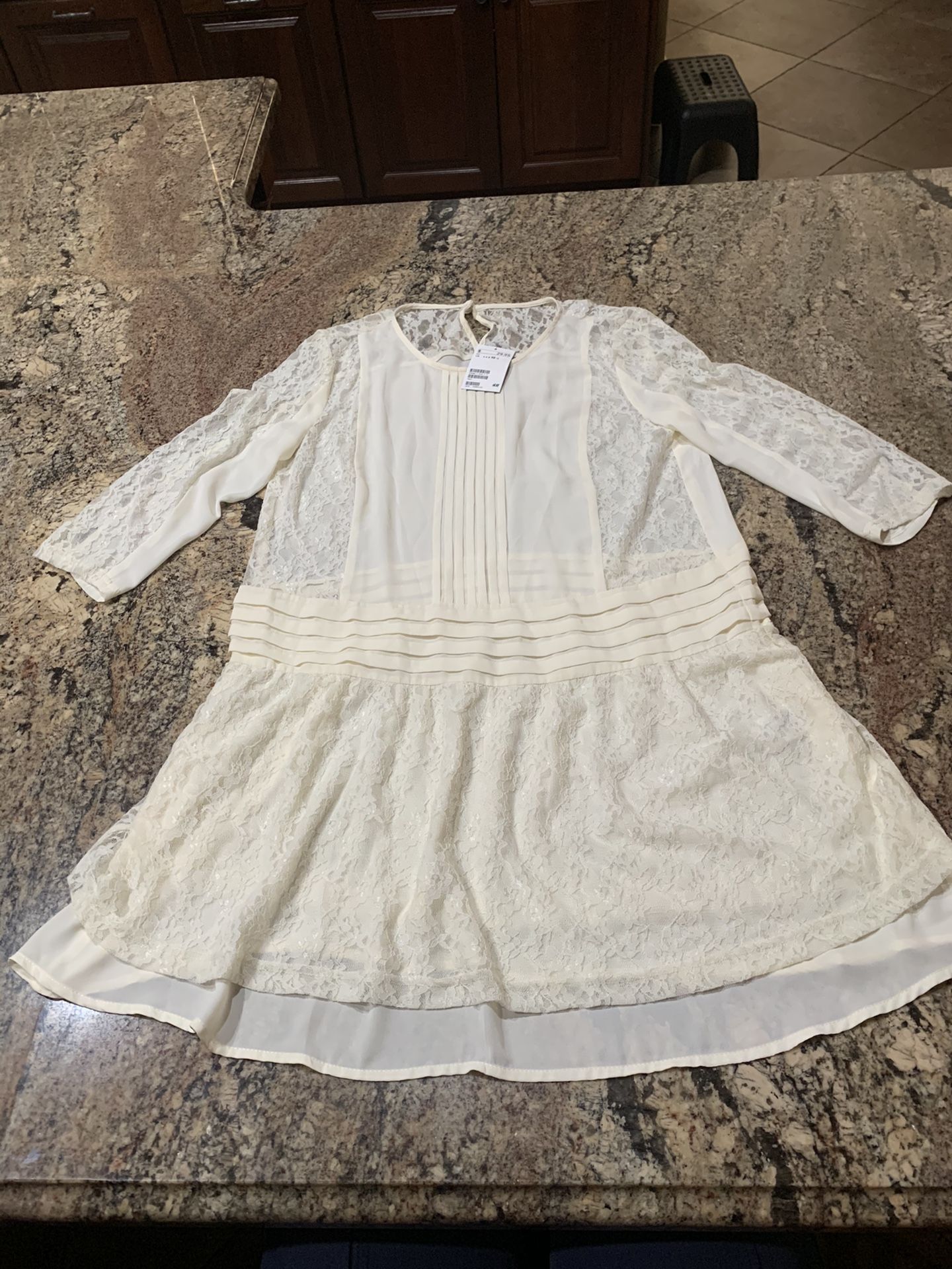 New H&M DIVIDED Ivory Lace Sheer Tunic Blouse Top Shirt Women’s size 10