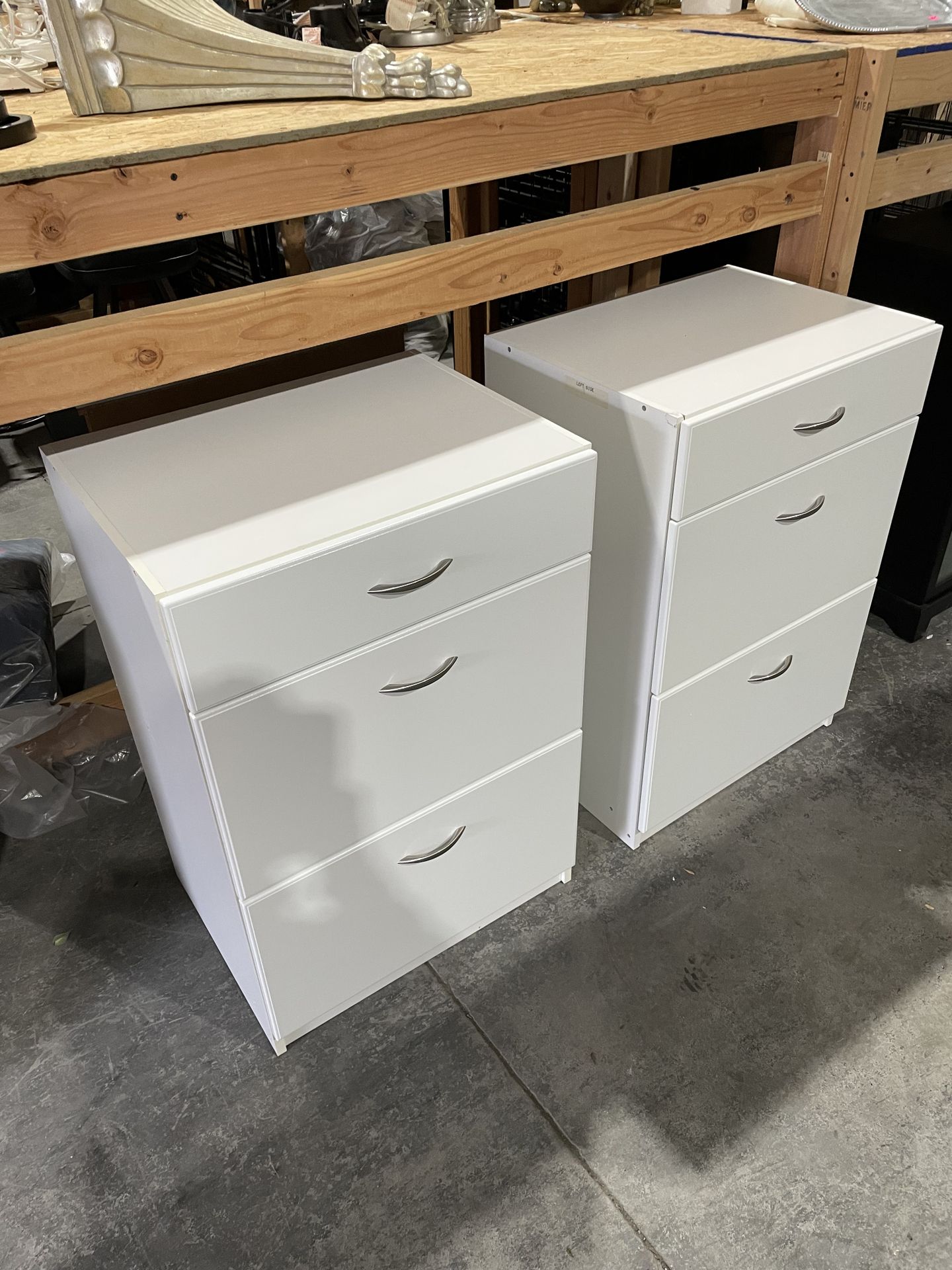 Matching white 3 drawer chests. 24” W x 35 1/2” H x 18 1/2” DP