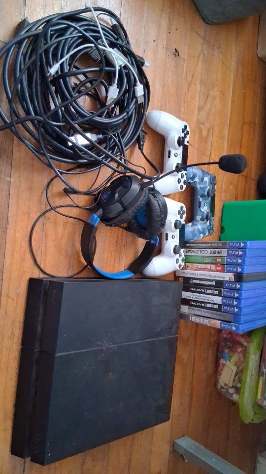Ps4 everything works good the only thing is that I dont havethe remote control Chargers 3 controllers 2 whitesand one military blue headset, and 11 games msg me for price no lower blowers please yes I understand the new games are out and this is is old but its in very good conditions my son just has it sitting in hes closet