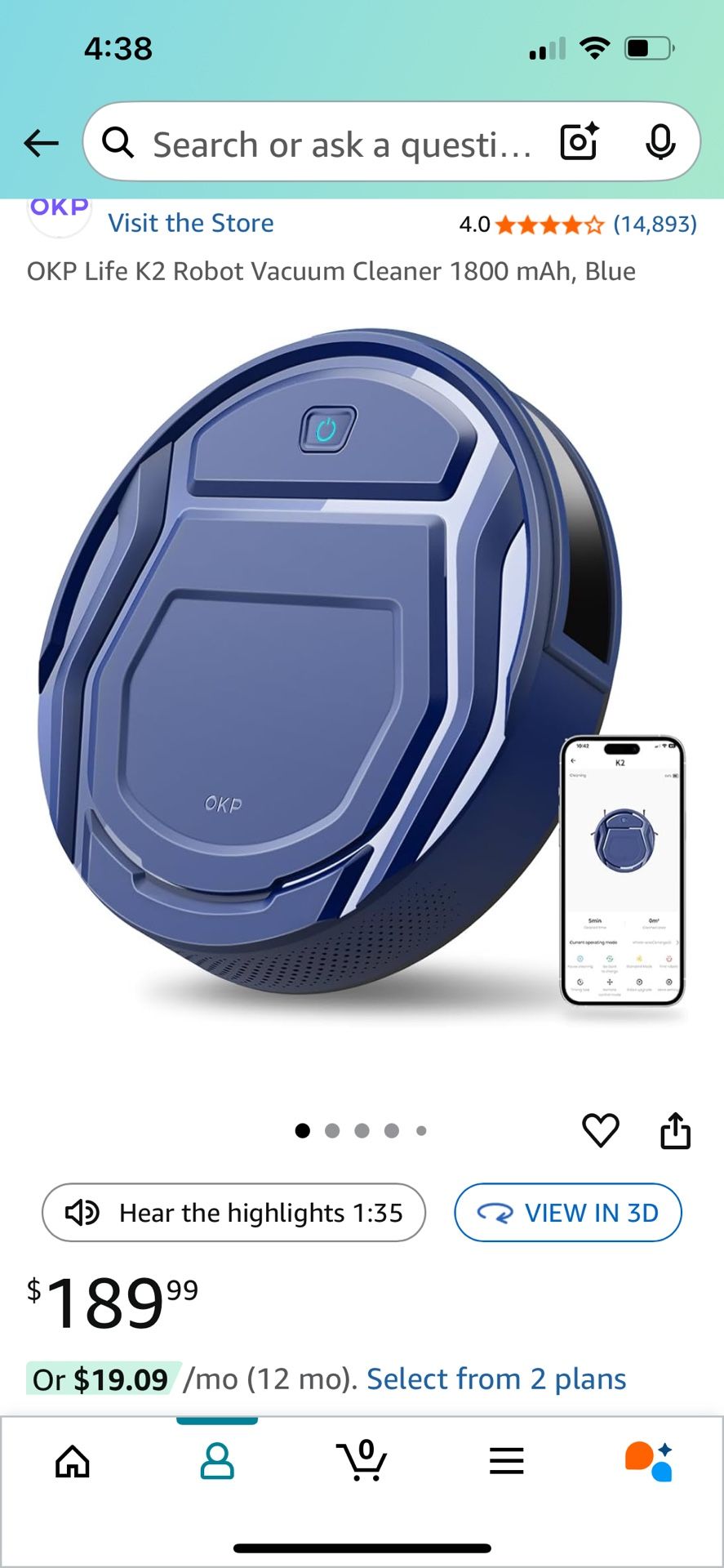 New, never opened, app controlled robot vacuum with Hepa filter and docking station. Works for both carpet and hardwood floors.