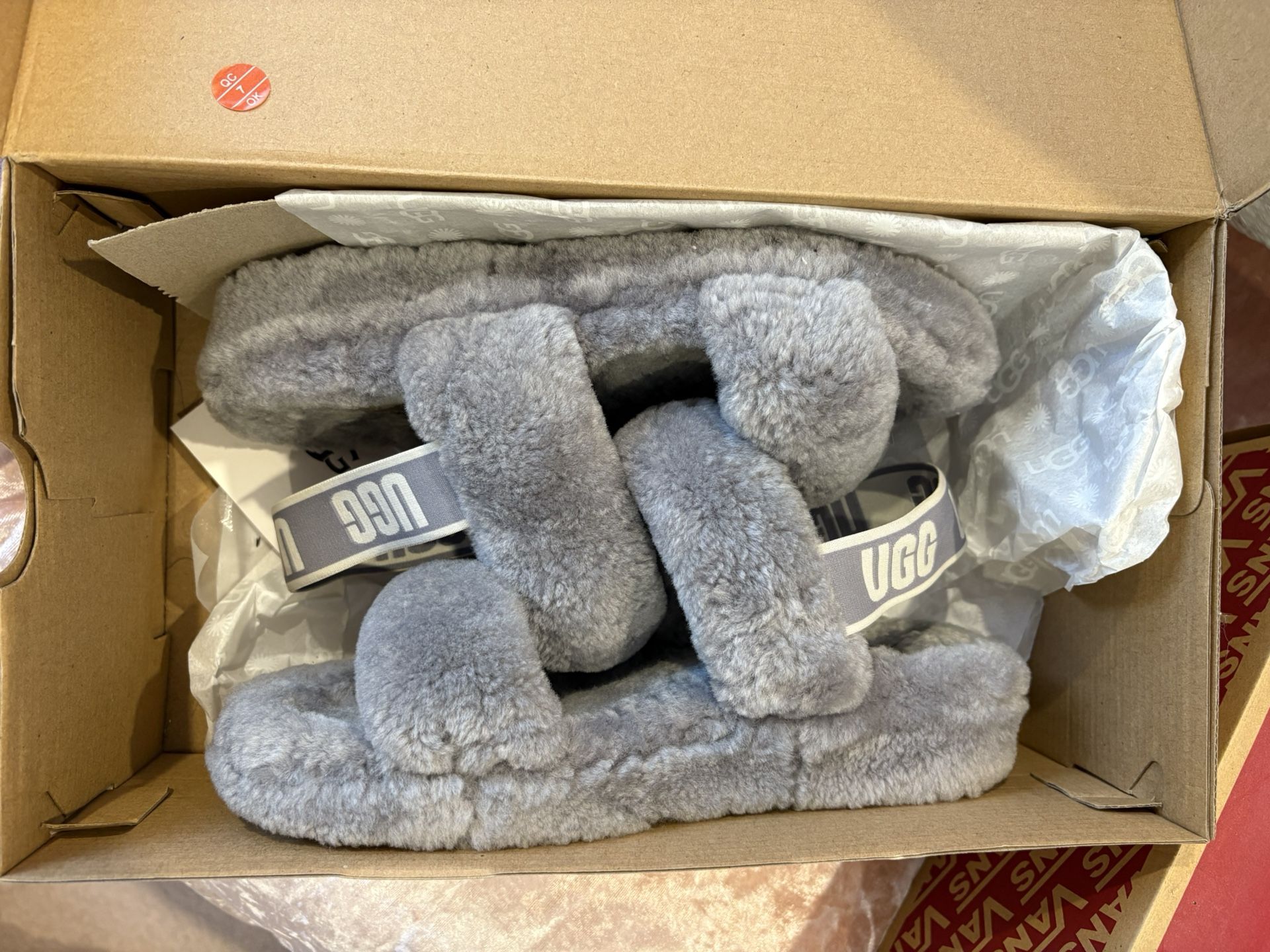These are women’s grey Ugg slides barely worn in size 8, they fit like a size 8.5
