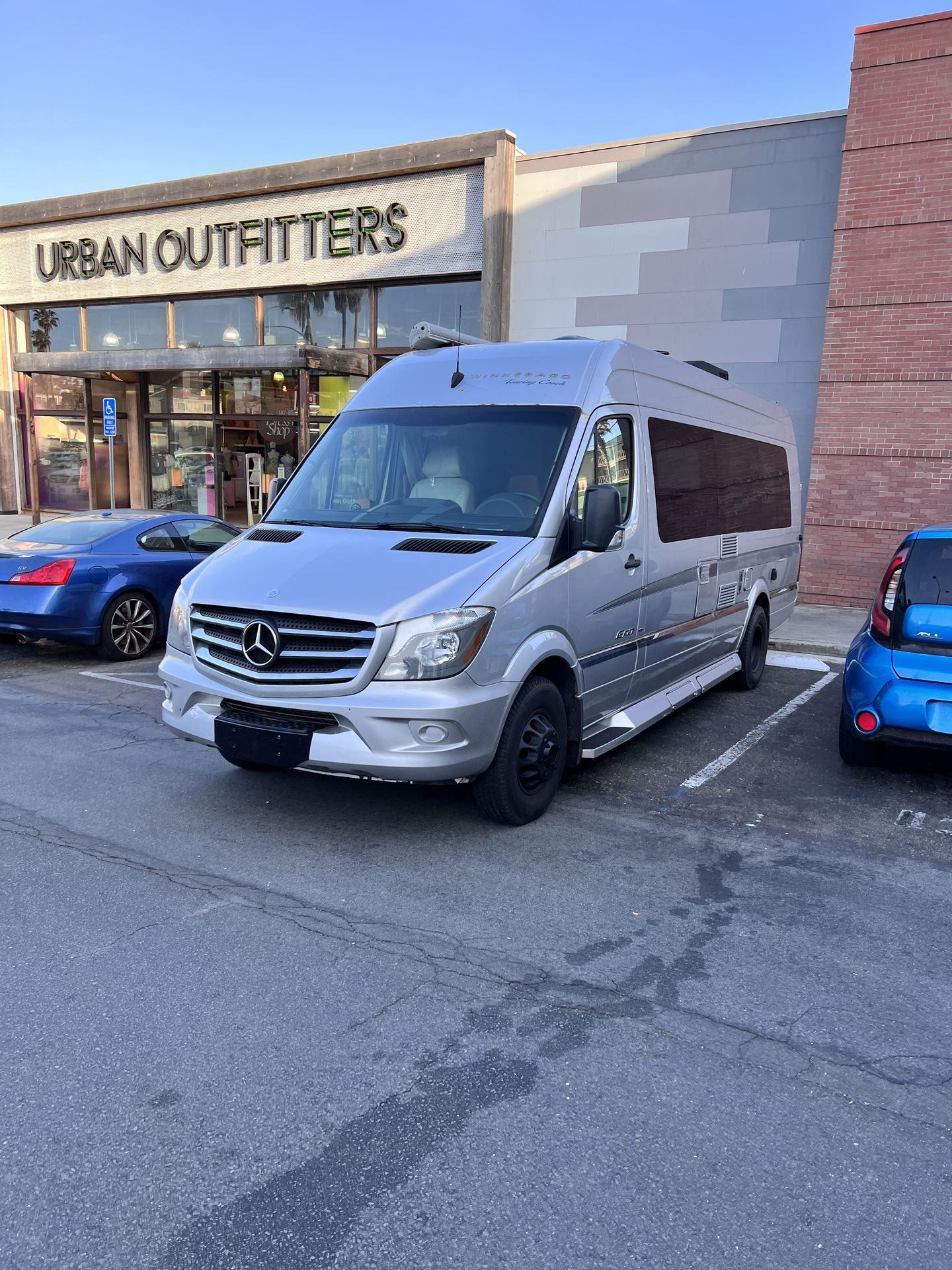 - 2015 [ Mercedes] Winnebago ERA 70X diesel Sprinter 124k miles. For a diesel this is just passed the break in period and has a plenty of life left as diesels last forever when properly maintained like this has been. The appeal of a Class B motorhome has always been that, unlike larger motorhomes, it can serve as the family runabout for everyday use in between family vacations. Just imagine being able to take the kids to a soccer game, for example, and have both a full kitchen for snacks and a clean bathroom for them to use whenever they want. A Class B is also a lot less intimidating to drive, handling very much like what it is, a big van. The steering is light and the motorhome corners very easily without excessive lean or sway with its 4 rear wheels: Duly. The turning circle on the Sprinter chassis is also surprisingly tight, so U-turns on larger surface streets do not pose a problem. Well-placed sink, stove and refrigerator make the galley a pleasant space to prepare a meal. Whether or not the ERA can serve your needs depends on who you are and where you live. The ERA is big as Class B’s go, measuring 24 feet long. From our testing around the suburbs of San Diego, that’s about any parking space . It’s also tall, so mall parking garages won’t work. The galley is well equipped with a genuine Corian solid-surface countertop, a two-burner range with glass cover, refrigerator, sink and microwave oven. There is an abundance of well-made cabinetry within reach, and 6 feet 3 inches of headroom, so no ducking is required for all but the tallest users. Shower is part of a wet bath, so space is at a premium. Frankly, it is amazing that a motorhome this small has a bathroom and shower at all, but it does. Located amidships, the wet bath even includes a small stainless steel sink, and a handy three-compartment soap dispenser so you don’t have to worry about stepping on soap or small shampoo bottles. The area is tall enough for all. The three-place bench seat at the rear of the motorhome converts to a bed with the touch of a button, which is convenient. The tabletop stows under the seat and is secured by two straps nicely. Once in place, the bed is surprisingly comfy, but being upholstered in soft durable Ultraleather. The ultra convenient 16,000-Btu heater keeps it pleasantly warm. Equipt with the same leather is the 4 Rotating captain chairs help make the most of the living space. For dining inside or playing family games or holding a business meeting. Also the ERA comes very well equipped with features such as a 22-inch LED HDTV, AM/FM CD/DVD player, MCD American Solo blackout shades, powered roof vent, TrueLevel holding tank monitoring system, exterior service center including an outside shower for surfers or workers and kids or pets and more. Our motorhome was also equipped with some options, including an front storage cabinet A/C heat pump a 2,500-watt Cummins Onan MicroQuiet LP-gas generator ($5,835); patio awning ($1,085); stylized Method aluminum wheels ($5420); and an exterior accessory package for $1,645, which brought the as-tested price to $127,005. That’s a lot of green for a small motorhome, but if you’ve been looking for a family van that you can vacation in, the ERA is one of the best Winnebago Industries has to offer. The cockpit is well equipped with ergonomically placed instrumentation and controls. This was the sticker in 2015: Specifications Performance * Fuel Economy: 21.3 mpg * Acceleration: * 0-60 mph: 19 sec * 40-60 mph: 11 sec Chassis * Model: Mercedes-Benz Sprinter * Engine: 3.0-L V-6 turbodiesel * SAE HP: 188 hp @ 3,800 rpm * Torque: 325 lb-ft @ 1,400-2,400 rpm * Transmission: 5-speed automatic with manual tip-shift * Axle Ratio: 4.18:1 * Tires: LT215/85R16 * Wheelbase: 170″ * Brakes: 4-wheel hydraulic disc with ABS * Suspension, F/R: Independent with mono-leaf spring and stabilizer/leaf spring with stabilizer * Fuel Cap: 26.4 gal * Warranty: 3 yrs/36,000 miles Coach * Ext Length: 24′ 1″ * Ext Width: 6′ 4″ * Ext Height: 9′ 11″ * Int Width: 5′ 10″ * Int Height: 6′ 3″ * Construction: Steel framing, steel skin and roof * Freshwater cap: 34 gal * Black-water cap: 10 gal * Gray-water cap: 21 gal * Water-heater cap: 6 gal * LP-Gas cap: 16 gal * Air Conditioner: 13,500 Btu * Furnace: 16,000 Btu * Refrigerator: 5 cu-ft * Converter/charger: 45 amp * Battery: Group 31 deep cycle (AGM maintenance free) * AC Generator: 2.5 kW LP-gas * MSRP: $104,093 * MSRP as tested: $127,005 * Warranty: 12 months/15,000 miles Wet Weight * (Water & heater, Fuel, LP-gas tanks full; no supplies or passengers) * Front axle: 3,600 lbs * Rear axle: 5,120 lbs * Total: 8,720 lbs Chassis Ratings * gawr, F/R: 4,410/7,720 lbs * gvwr/gcwr: 11,030/15,250 lbs * rocc: 2,310 lbs * (Deduct weight of passengers for net cargo capacity) * gawr: Gross Axle Weight Rating * gvwr: Gross Vehicle Weight Rating * gcwr: Gross Combination Weight Rating * rocc: Realistic Occupant and Cargo Carrying Capacity (full water, no passengers) Th
