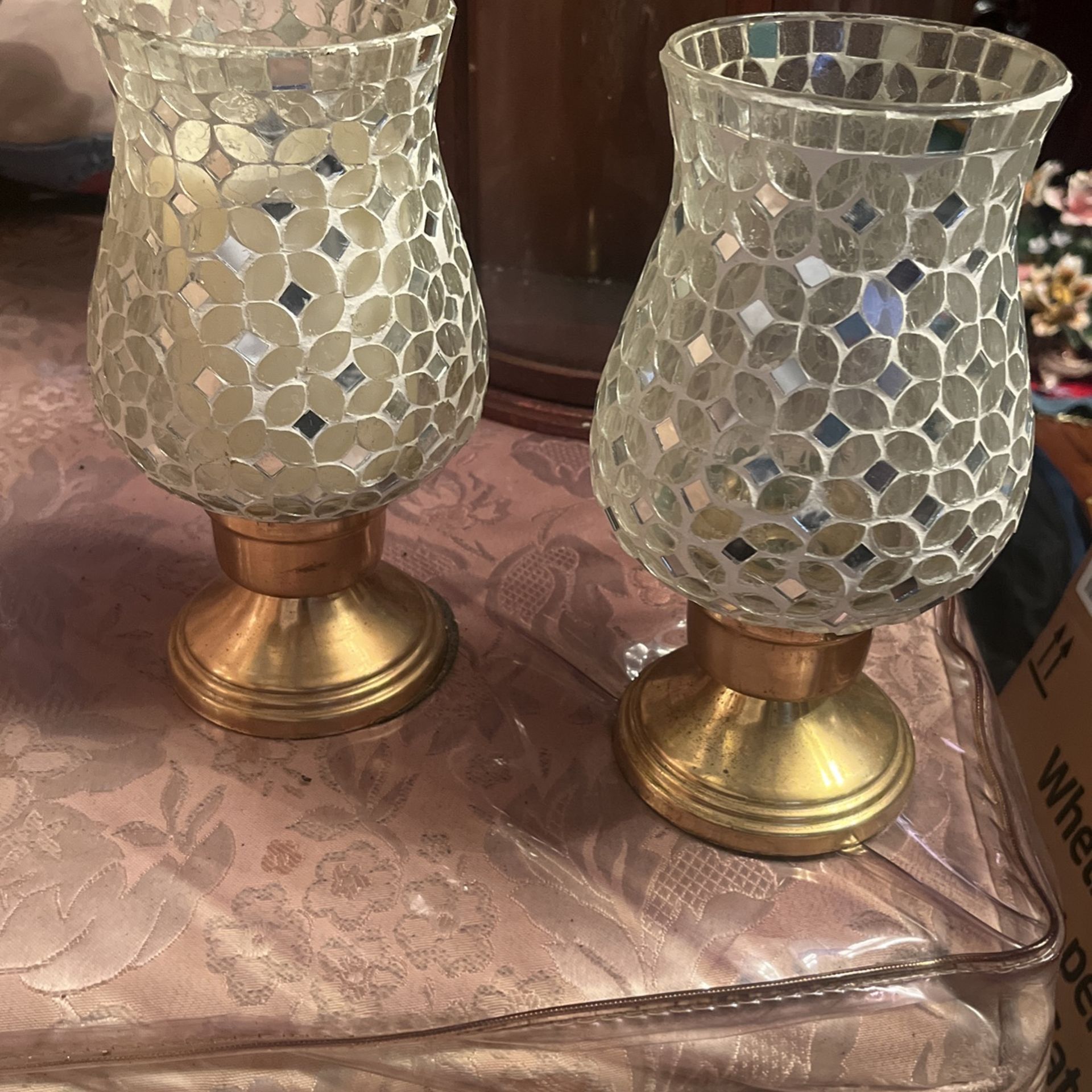 2 pairs of mirrored candle holders.. 4 in all