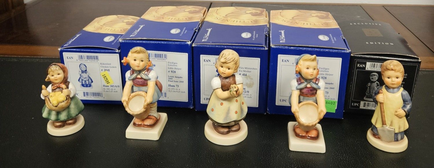 This lot of 5 Goebel Hummel figurines is a must-have for collectors of antique-style decorative sculptures and figurines. Made in Germany from porcelain, these figurines feature multicolored figures. The collection includes original Hummel figurines from the 1990s and 2000s, with a finish that gives them a vintage look. The lot features six figurines, each depicting different subjects and themes, such as people and girls. These figurines are perfect for all occasions and will make a great addition to any collection. Whether you're a Hummel enthusiast or just looking for unique decorative pieces, this lot is sure to impress. They come with original box