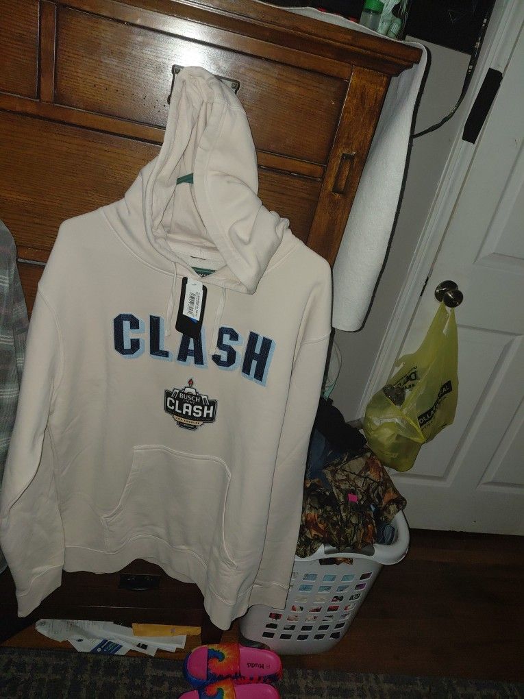 Light tan has Busch light logo on front and CLASH AT the coliseum its made by Nascar official Nascar product it sells for 89.00 this one is new an still has tag on it be a great gift or if you collect be nice add to your collection I'm asking 20 for it if you seen it you'd understand thank you,now 25