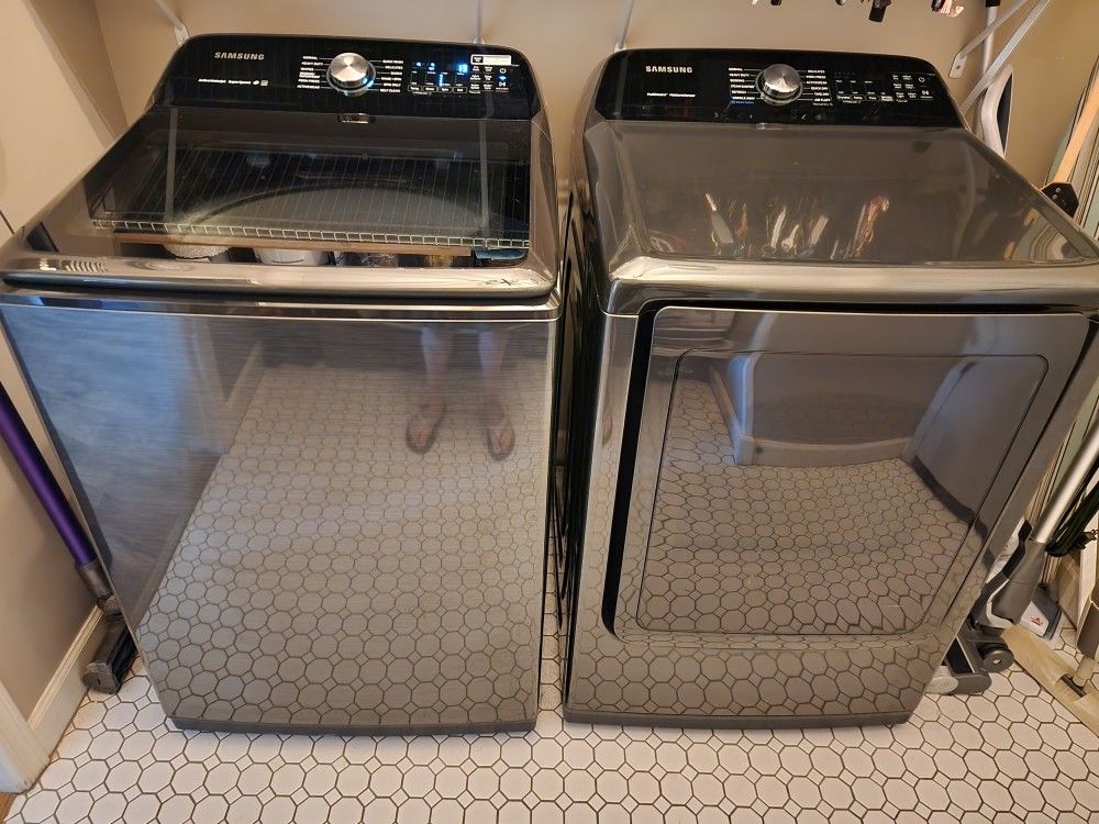 Samsung top loader washing machine and dryer. Great shape, about 3-4 years old. We upgraded to one of the new all in ones to save space. Model numbers are in the pics for your own research. Let me know if you have any questions.