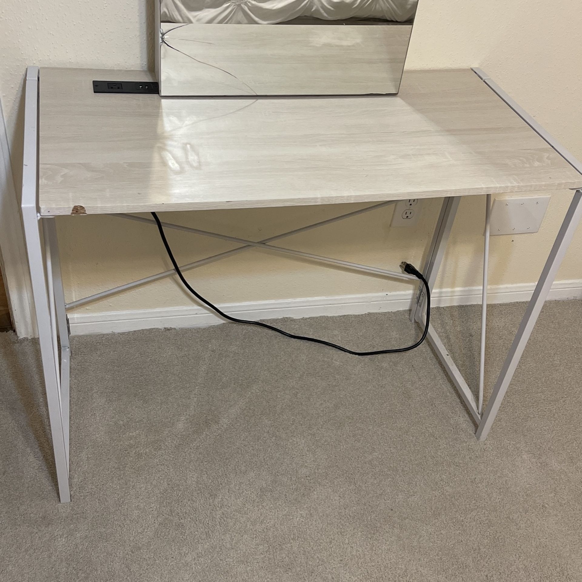 30$ OBO has 2 usb and 1 plug works had it for 1 year used this as my vanity and painting area What you see are the only wrongs things with it it has old paint and a chip mirror is not included
