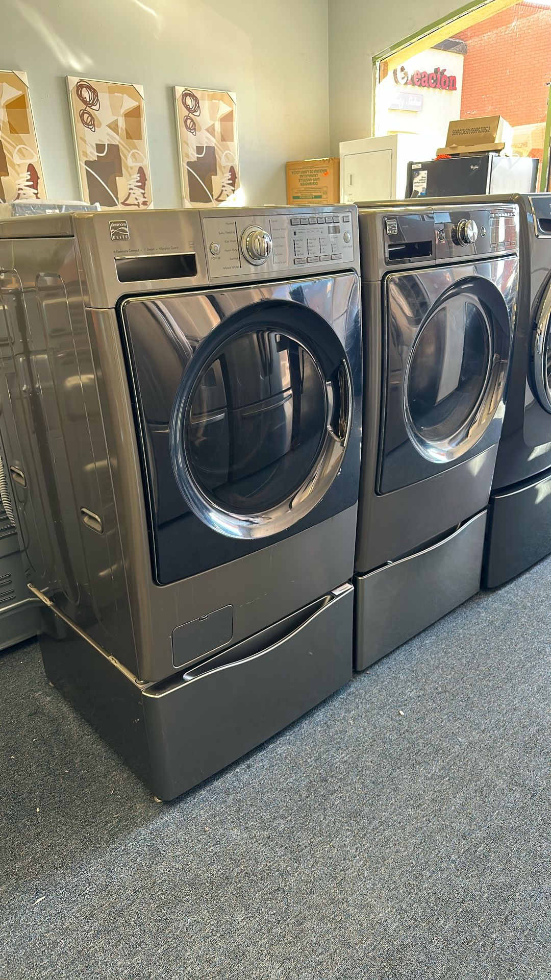 Front Load Kenmore Elite Washer And Dryer Set On Pedestals