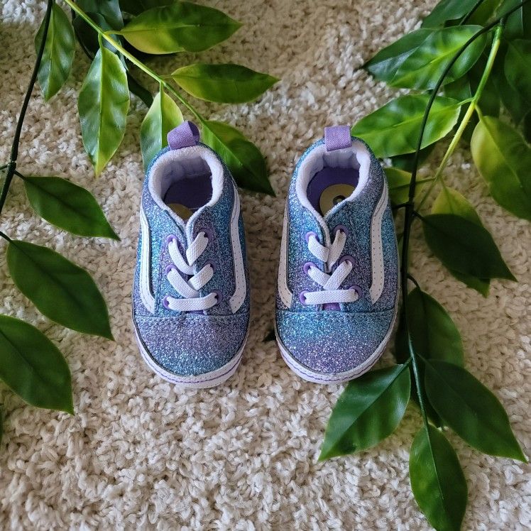 BNWOT/BOX Size 3 Super cute and adorable blue/purple glitter crib shoes!(: Perfect for keeping your baby stylish In my opinion they give off mermaid vibes How can you not want to make these your princess's 1st pair of vans!!!?(: Get them now before it's too late Will ship with extreme care