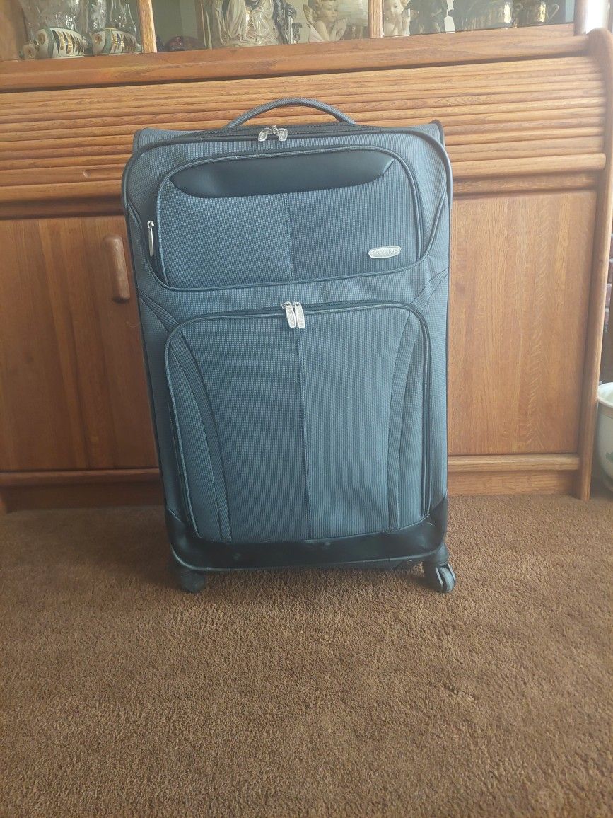 Skyline Large Checked In Travel Luggage Suitcase Dimensions 29"X18"X13 Soft Shell Lightweight (5lbs) Expandable Three compartments Three handles Four Spinning Wheels Normal wear Gray Good Condition