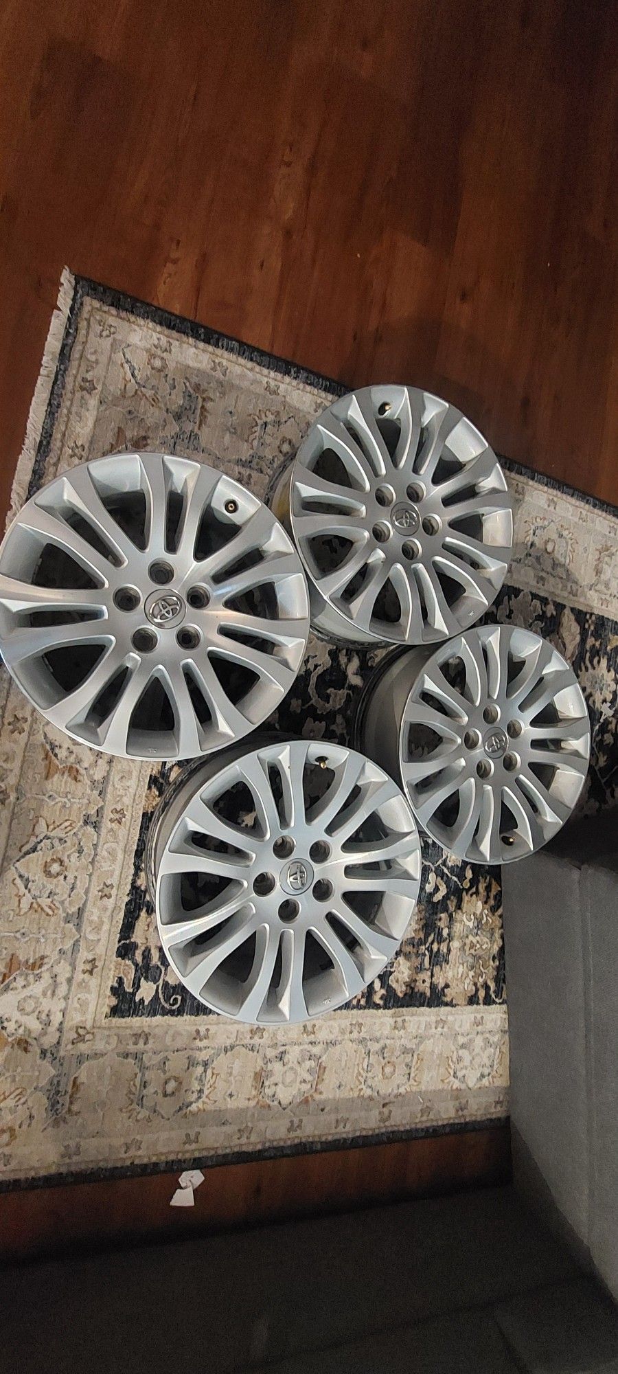 Really good condition 5x114.3 5x4.5 toyota sienna wheels 2011 to 2019 or can fit other cars with the same patern but make sure the offset is good. Or you can add wheel spacers. Sold my 20011 sienna with different wheels on it. The last picture shows price for new ones online and specs. First come, first serve. I can probably hold it if you zelle me. Other than that it's first comes takes it. $ 600 firm. You won't find used like these.