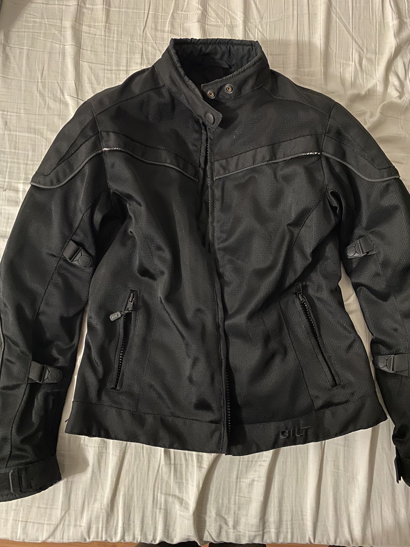 Womens Large jacket $70 OBO. Comes wjth back and shoulder protection On left elbow a slight burn from the exhaust but still in very great condition and comes with liner for cold days