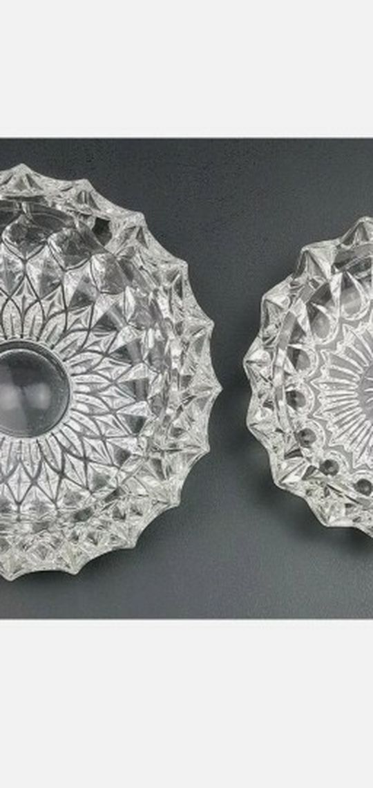 (2) Vintage Glass Lead Crystal Cut Round Cigar Ashtray Trinket Heavy Thick