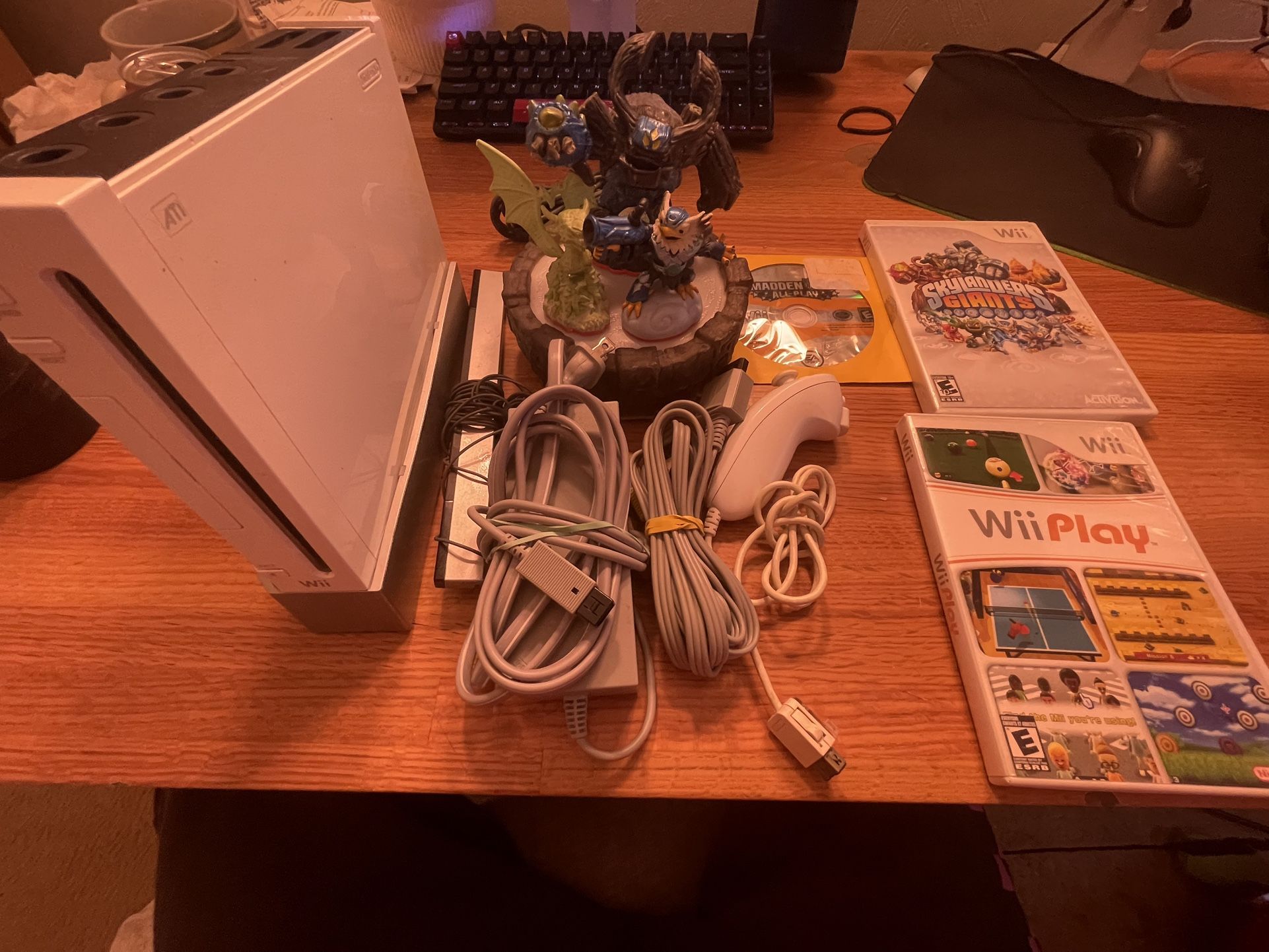 Local pickup/ drop off only NEED GONE ASAP No remote Game cube compatible Skylanders bundle Wii play included Madden all play included Nunchucks included Cables and sensor included