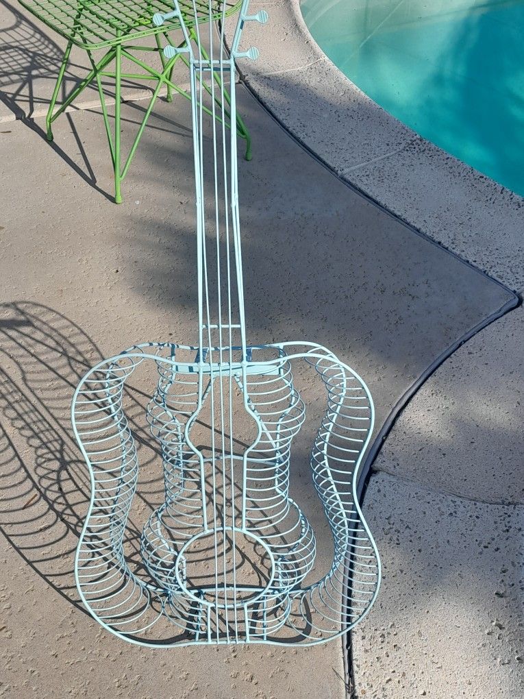 About 4 foot tall standing metal guitar art