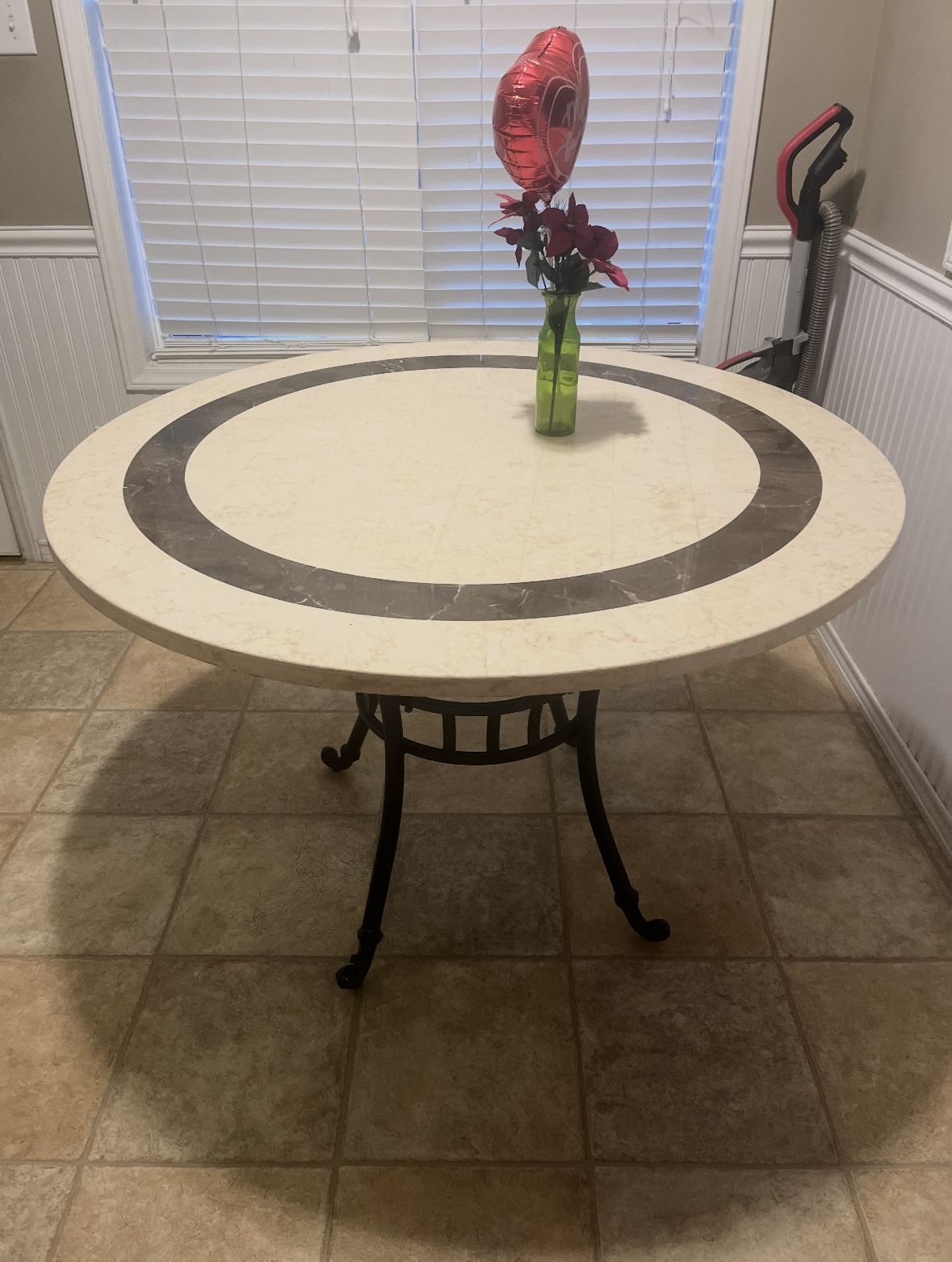 Marble/Stone Table top with metal legs Suitable for 4-6 people Pick up off Camden Rd- Can deliver for $20 extra