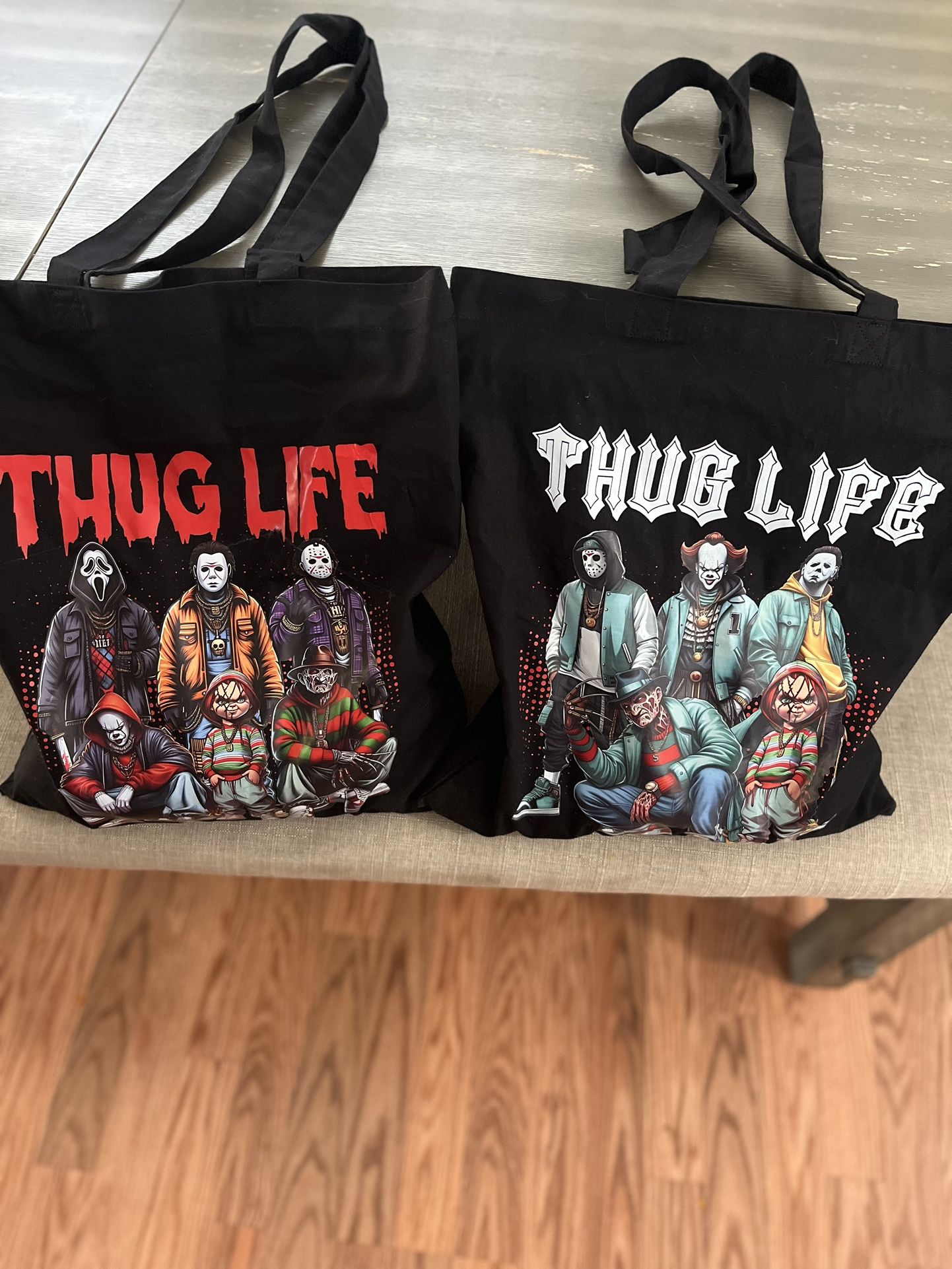 Thug Life Trick or Treating Tote Bag is your go- to accessory for Halloween. This tote bag is designed for trick-or-treating, making it ideal for costume wear. It's a fun and practical choice for your spooky adventures. * Halloween Costume Accessory: Perfect for enhancing your Halloween look. * Trick or Treating: Ideal for collecting treats during the festive season. * Versatile Use: Suitable for both kids and adults. This tote bag is a must-have for any Halloween enthusiast. It's a stylish and functional accessory that will make your trick-or-treating even better