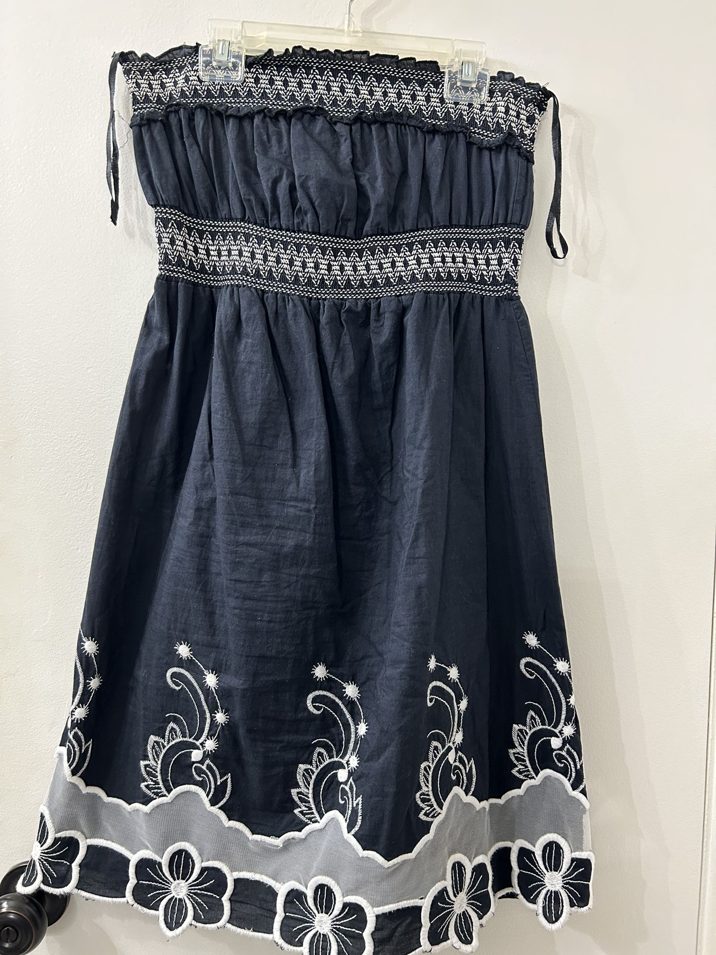 Black Embroidered Summer Dress. Dress is lined, can also be used as bathing suit cover up. Size is small but fits like medium/large or size 8/10.