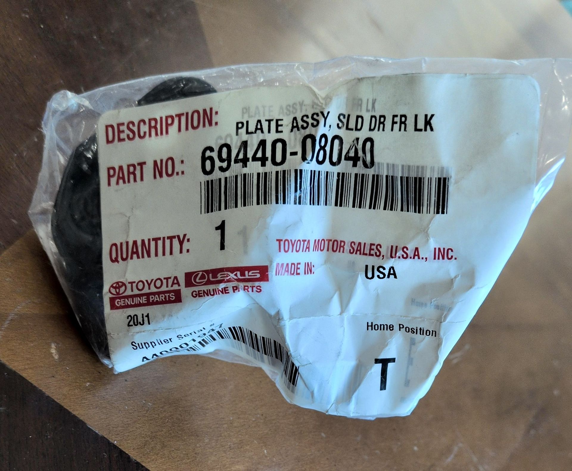 Hi, selling this Toyota OEM door striker that works for both the Left and Right sliding doors. The part number is on all of the photos. One photo is of the description of the part on the Toyota website. The part is brand new and never used. Bought it thinking I needed it, but ended up not being the case. If you have any questions let me know!
