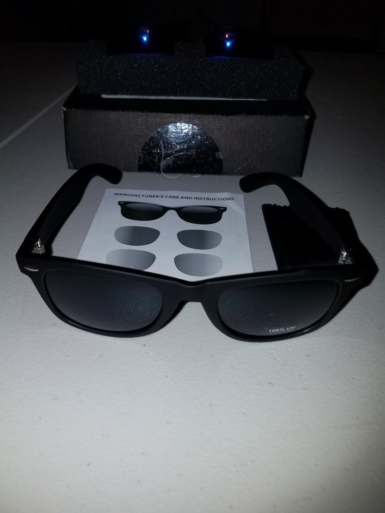 New sunglasses with 3 different lenses. Includes blue,yellow,smoke lenses and cleaning cloth. Also care instructions. 100% UV protection. Price:$20 FIRM Location:Bridgeport,CT