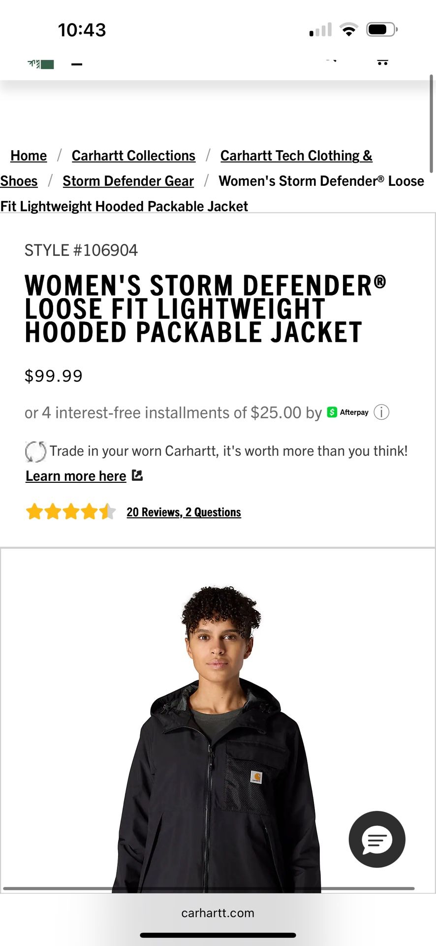 Women’s Carhartt Rain Jacket XL