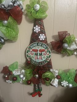 Christmas Hat Wreath Door Decor Feet Disc$60Kingsvl Naval, TX