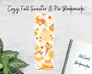 Cozy Fall Sweater & Pie Bookmark – Autumn Reading Gift