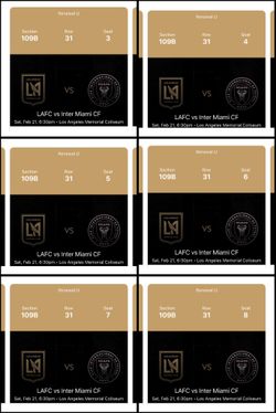 Sold6 TICKETS FOR LAFC vs MIAMI CF SATURDAY FEB.21 AT 6:30 PM$295Highland Park, CA