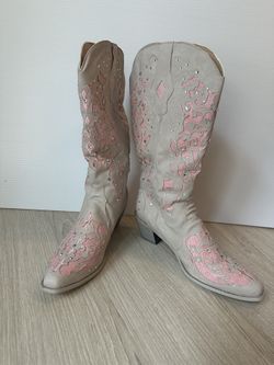 Sparkle Ivory & Pink Cowboy Boots Size 43 $85Durham, NC