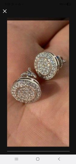 14 Kt Over 925 Silver Simulated Diamonds Mens Earring Screwback Studs$140Perris, CA