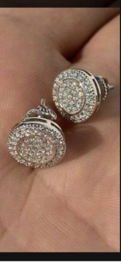 New 14 Kt Over 925 Silver Simulated Diamonds Mens Earring Screwback Studs$140Perris, CA