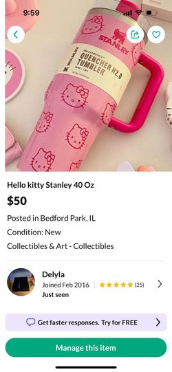 Hello Kitty Stanley Super Cute$50Bedford Park, IL