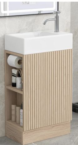 Visit the QiangLave Store 18.6 Inch Bathroom Vanity with Sink, Freestanding Bathroom Storage Cabinet, with Featuring Integrated Ceramic Basin and two-$150Atlanta, GA