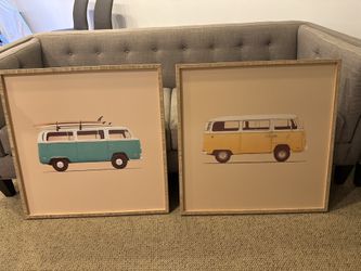 Blue And Yellow Wood Frame Set Of VW Vans $230La Costa, CA