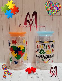 Autism Awareness Puzzle Theme Glass Custom Tumbler 16oz. With Lid & Straw Ea.$15Philadelphia, PA