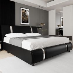 Bed Size- Full - TTVIEW Modern Faux Leather Upholstered Platform Bed Frame with iron/metal decor and an adjustable, curved headboard$200Citrus Heights, CA