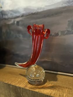 Art Glass Easter Lily Cornucopia Vase Controlled Bubble Paper Weighted Base Red$28West Linn, OR
