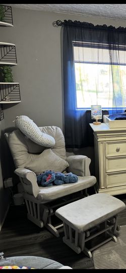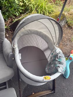 Grey Rocking Chair And Folding Bassinet $60Oregon City, OR