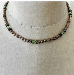 Sterling Silver Bali Bead Necklace Green Crystal Accent Toggle Clasp Artisan$60Carlsbad, CA