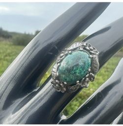 Vintage Sterling Silver Floral Leaf Ring with Chrysocolla & Azurite Stone$80Carlsbad, CA