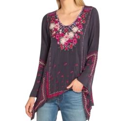 Johnny Was Wish Stitch Embroidered Silk Tunic Top Boho Floral Purple Pink$70Carlsbad, CA