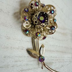 Sarah Coventry Vintage 1960s Gold Tone Aurora Borealis Flower Brooch$30Carlsbad, CA